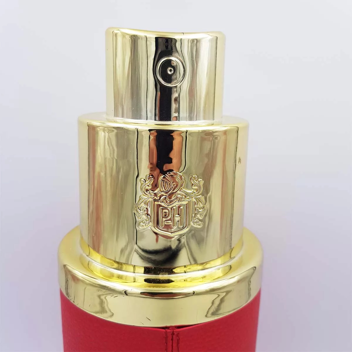 The perfume spray has an external coating imitating leather.