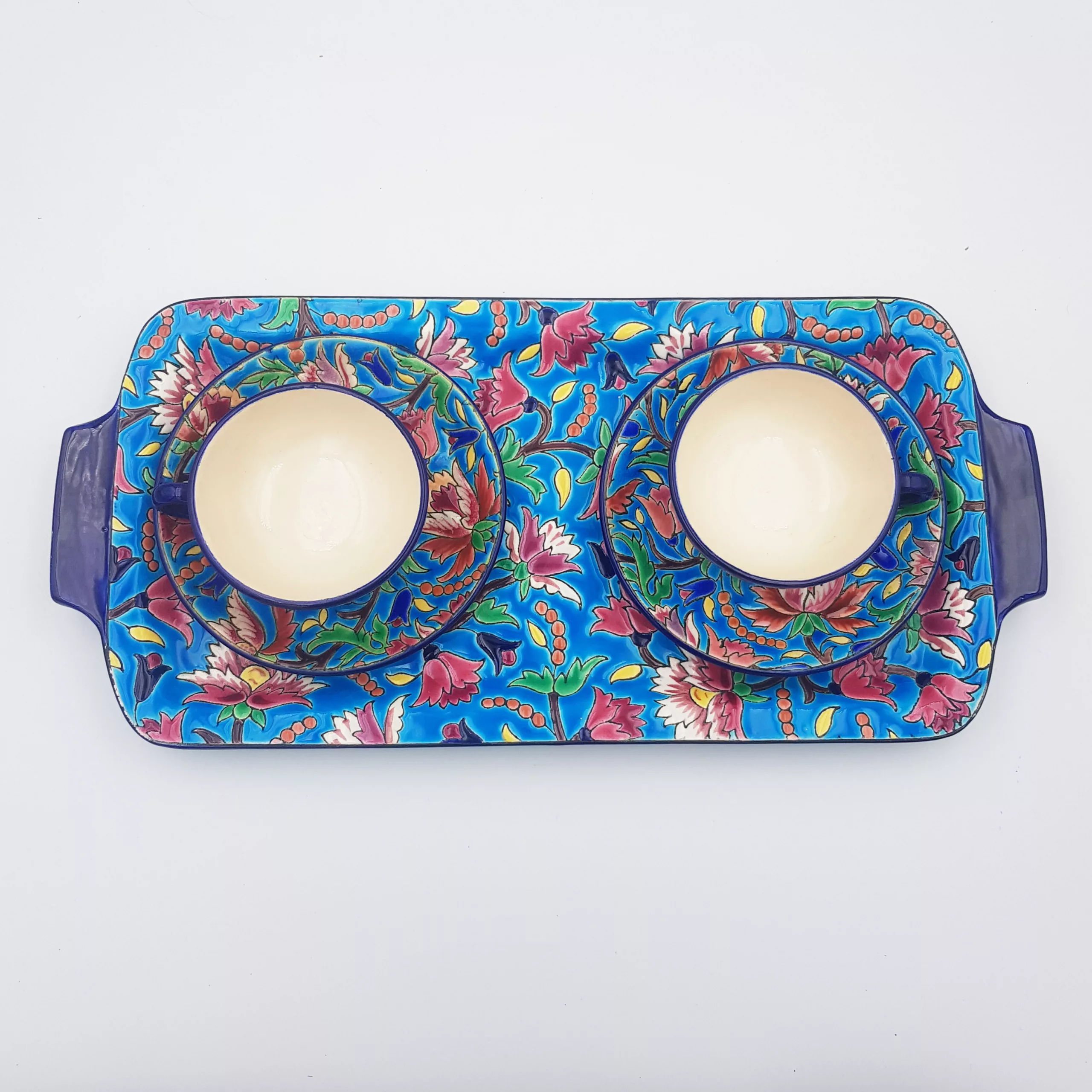 In very good condition, no chip or crack whatsoever. Colors very well preserved. Tiny scratches to the tray’s corners.