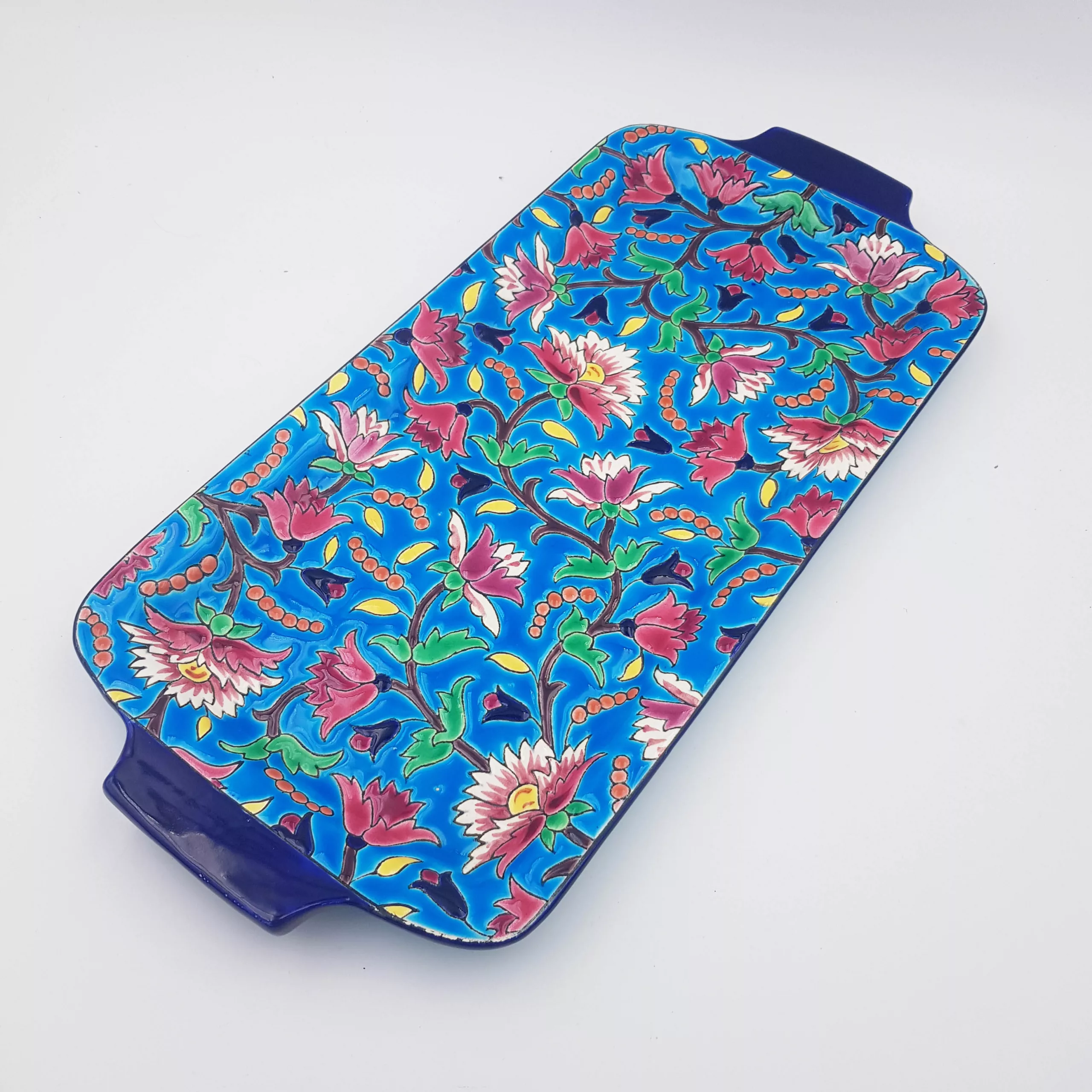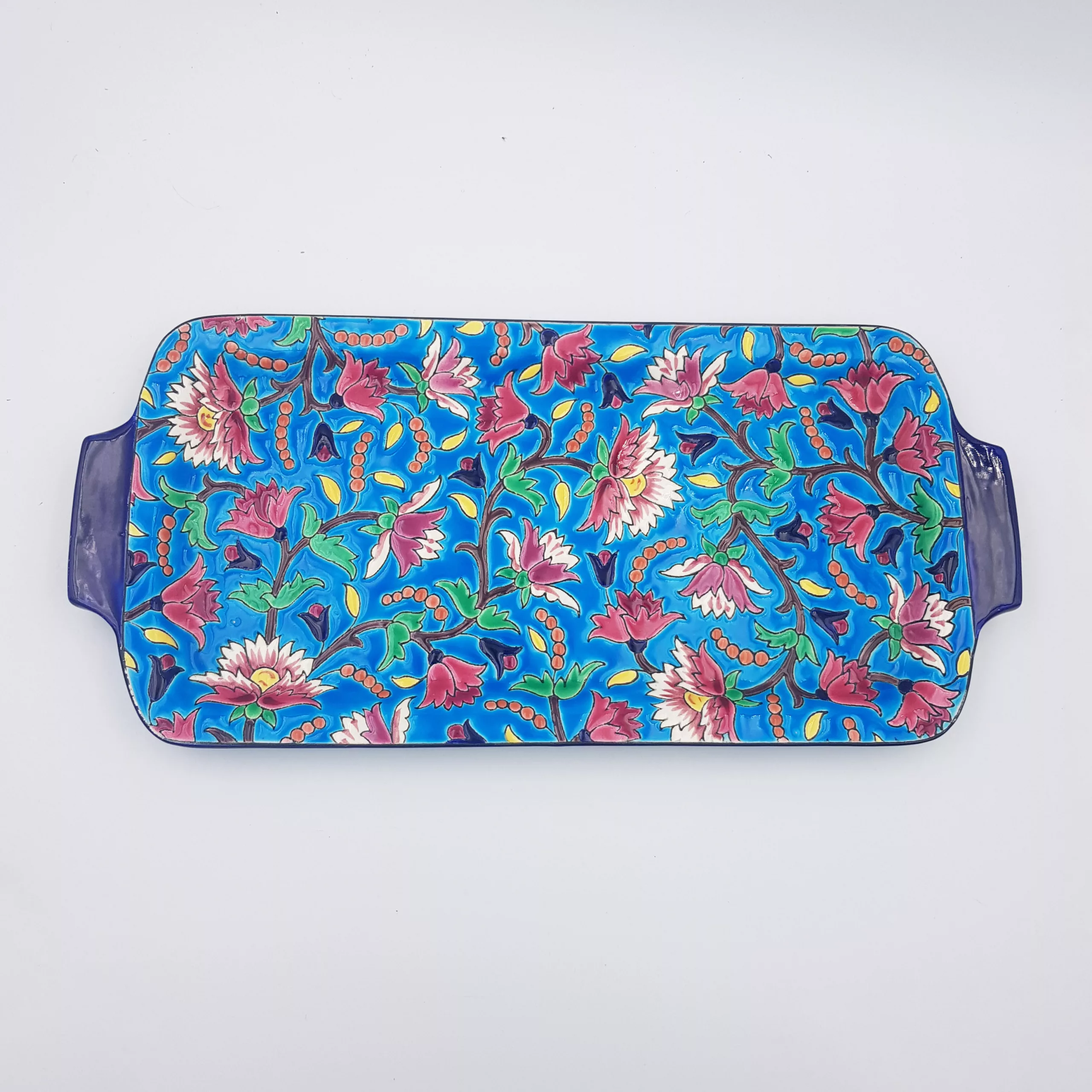 Earthenware. One of the typical floral designs of the manufacture, on a blue background.