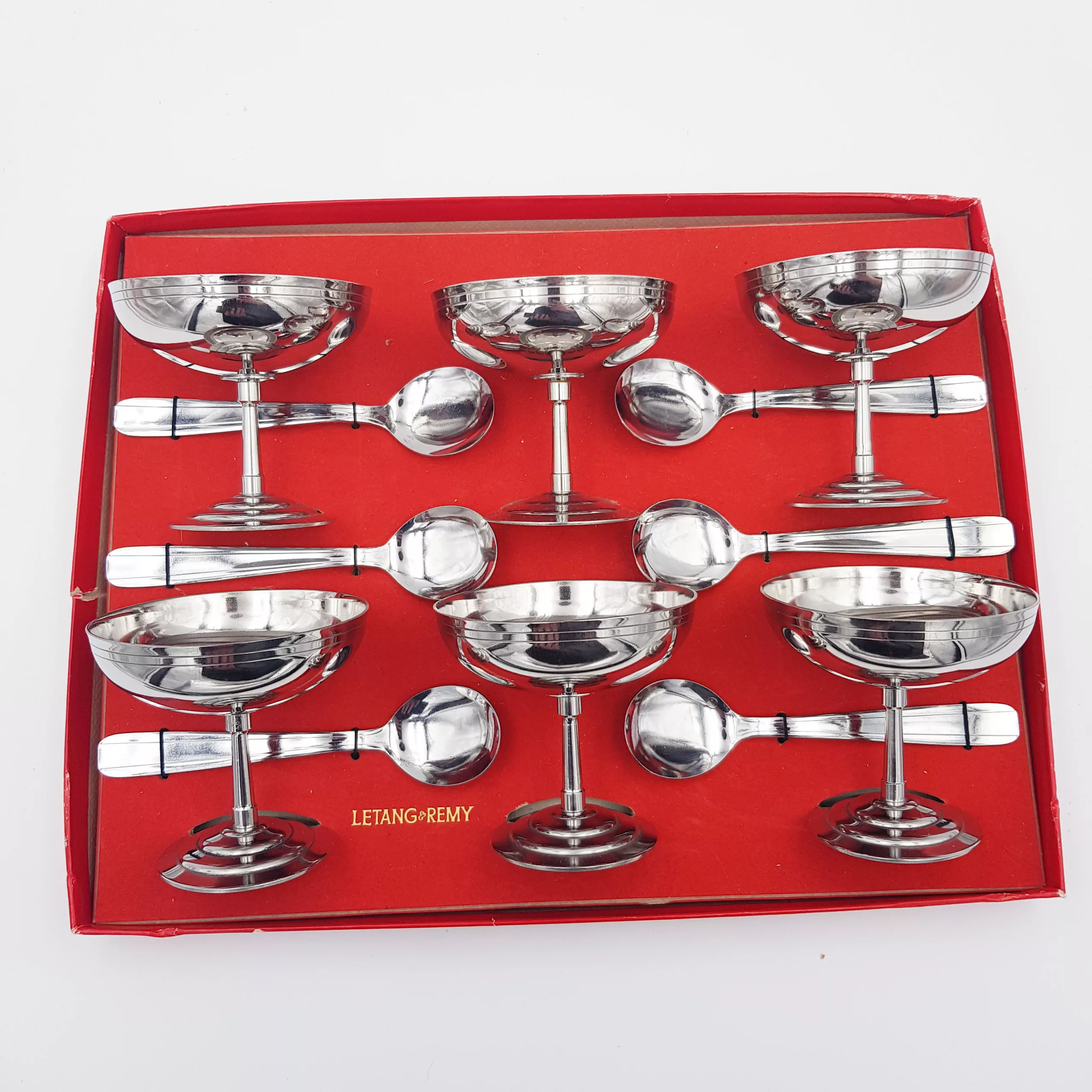 Box 6 Vintage Dessert bowls LETANG & REMY “Classic” stainless steel