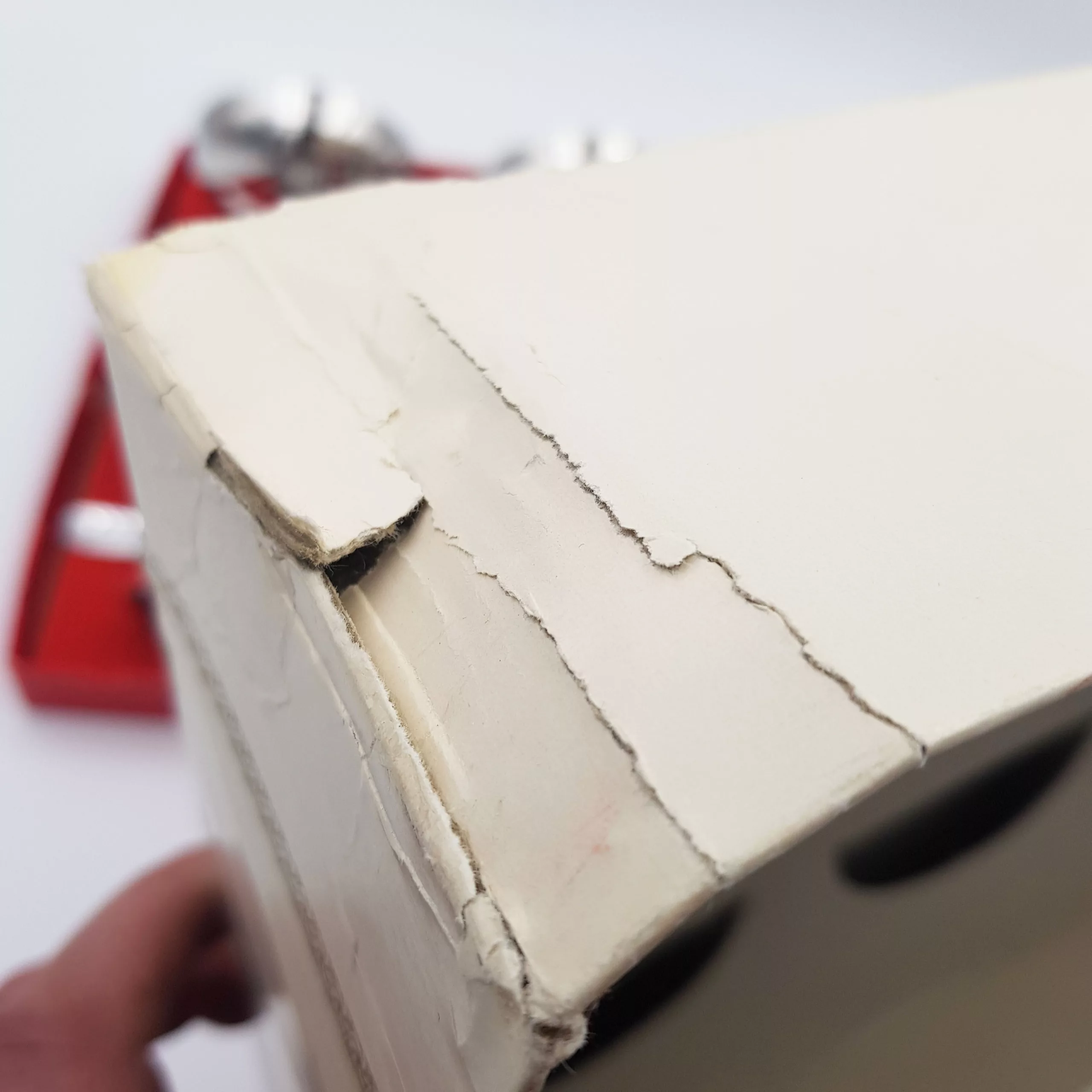 Vintage products that have already been used. Still in very good overall condition, no bump whatsoever and still very bright. Very limited scratches from use inside the cups. Box in fair condition, tears, scotch tape. Please have a look at the video and the pictures.