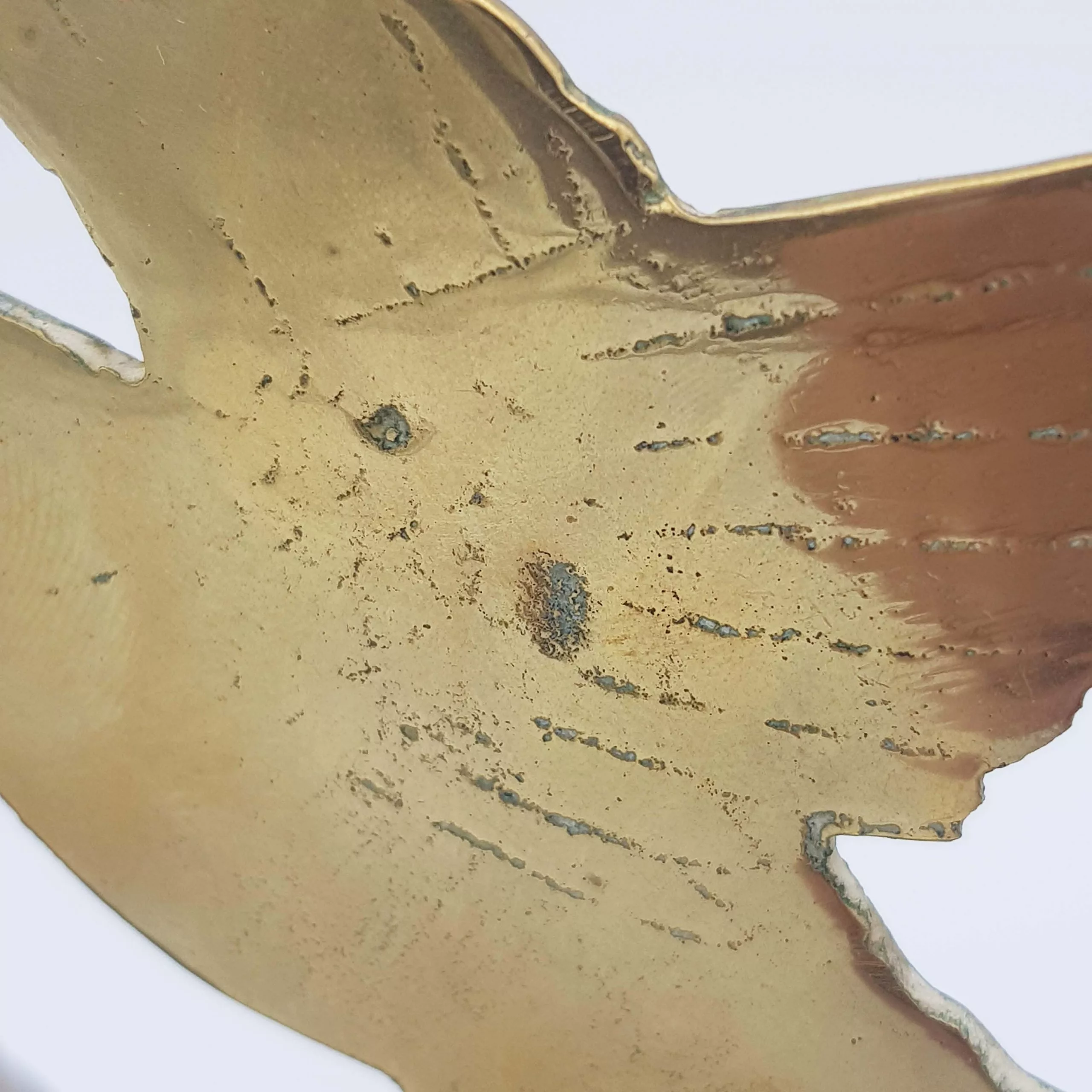 The bell is held in a stylized bird’s beak.