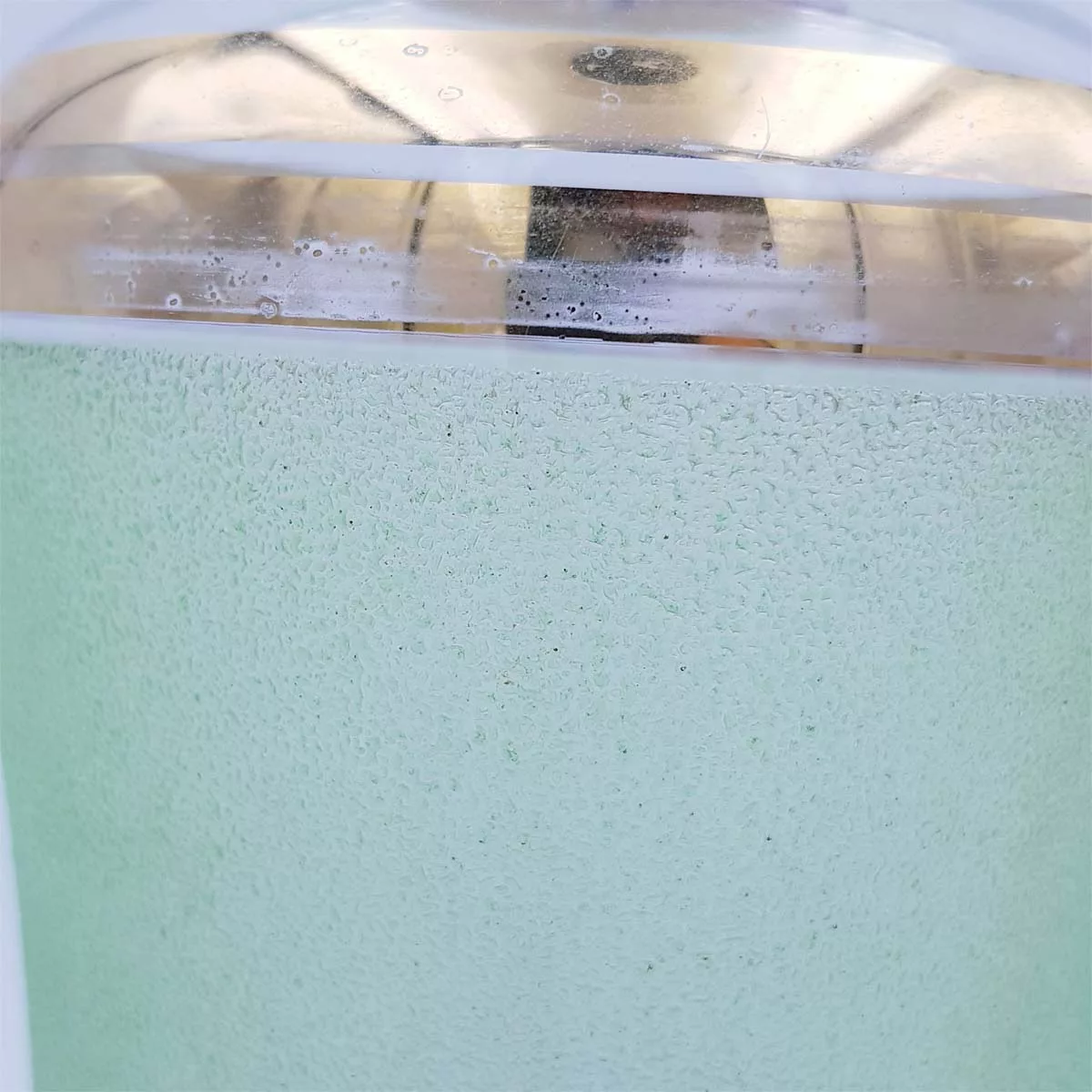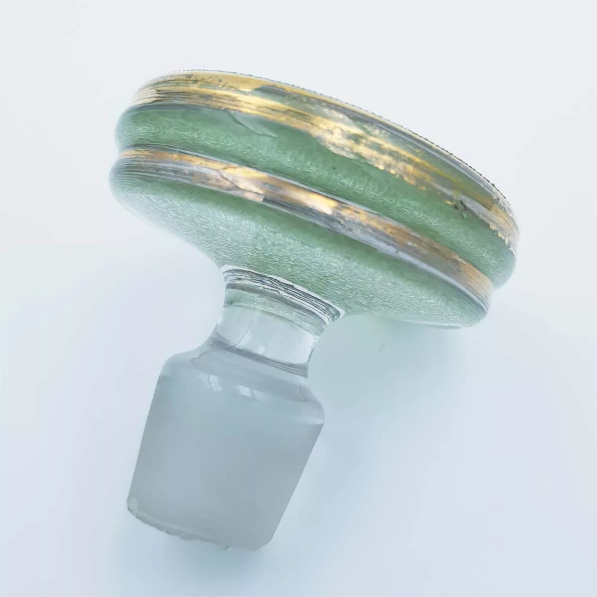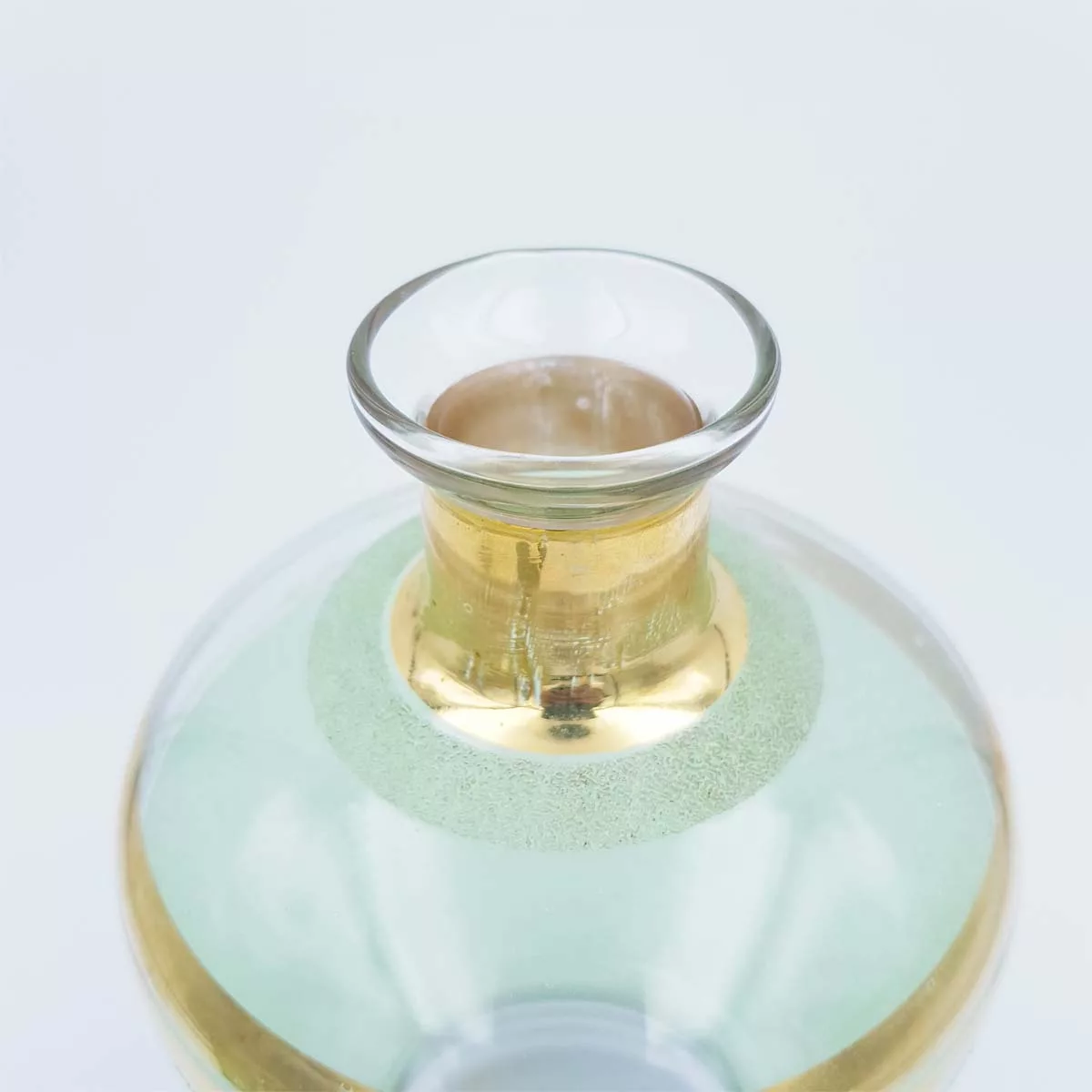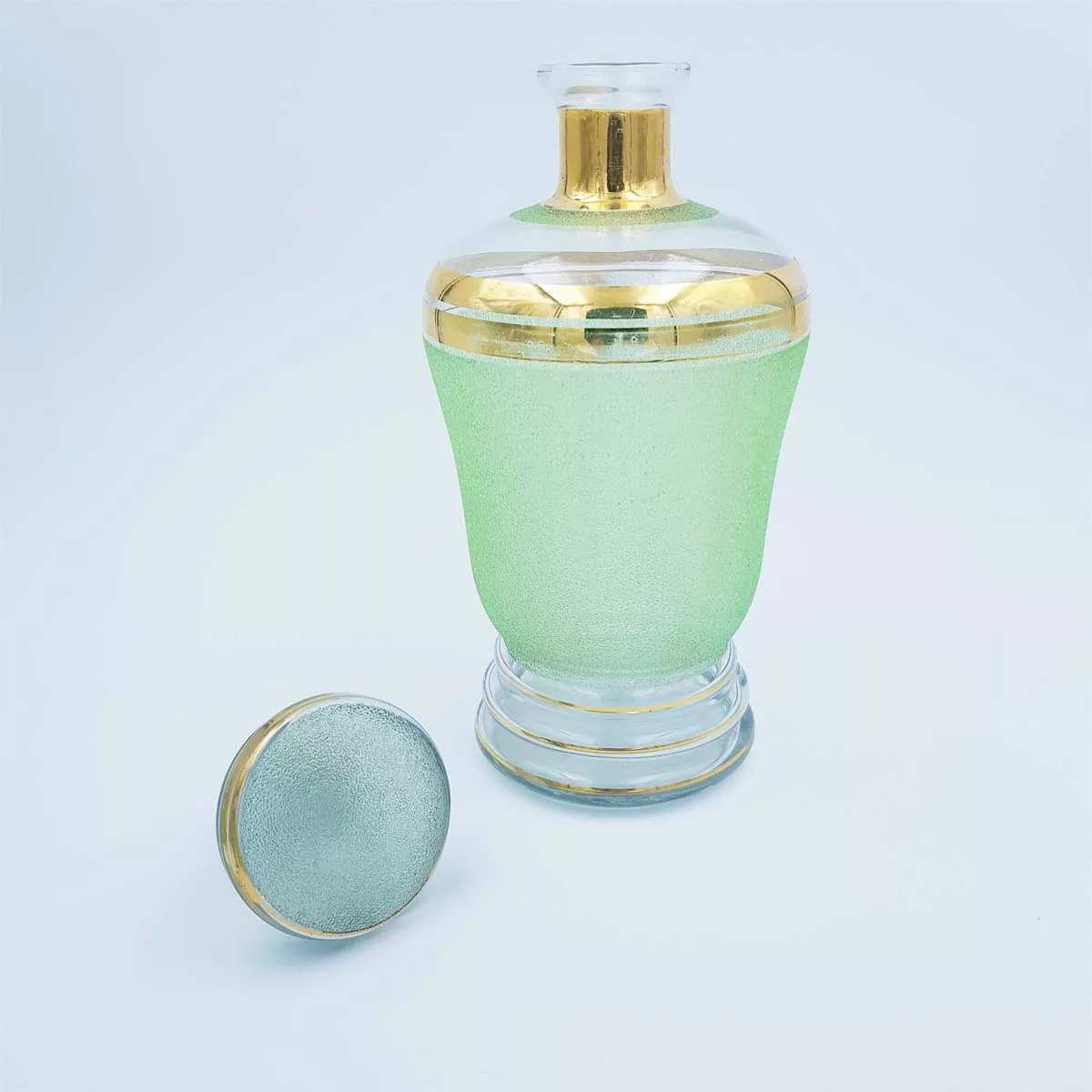 Made of a grainy-textured and slightly opaque glass, its green tones and golden-coloured borders will give a new taste to your Scotch, cognac or vodka.