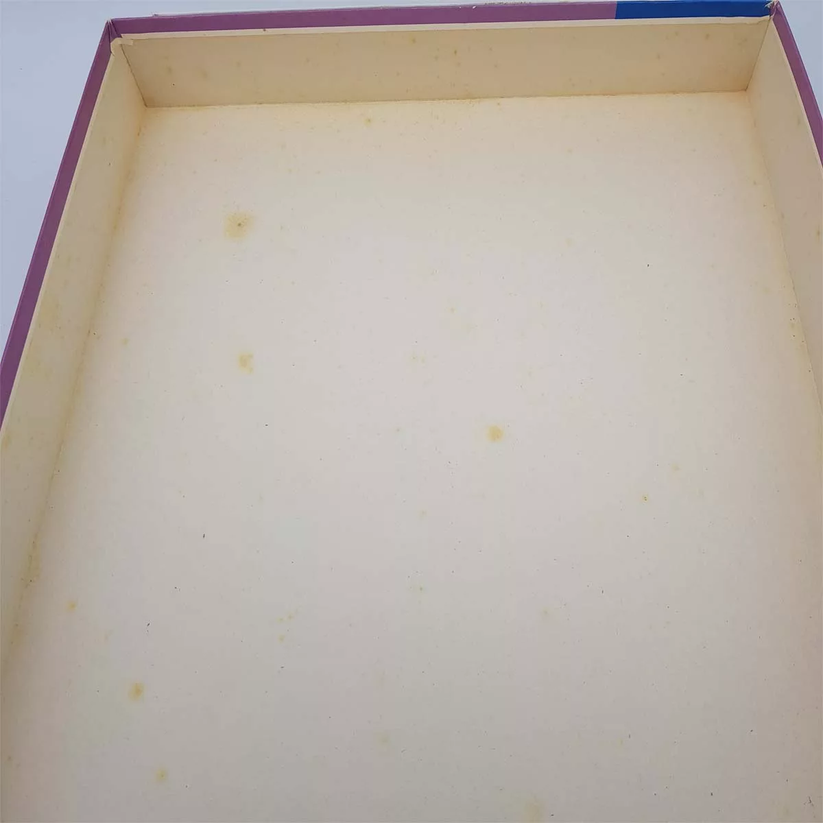 Sealed bag inside the box, never opened. Small stains inside the box, the outside with the photo is in very good condition. Please see pictures.