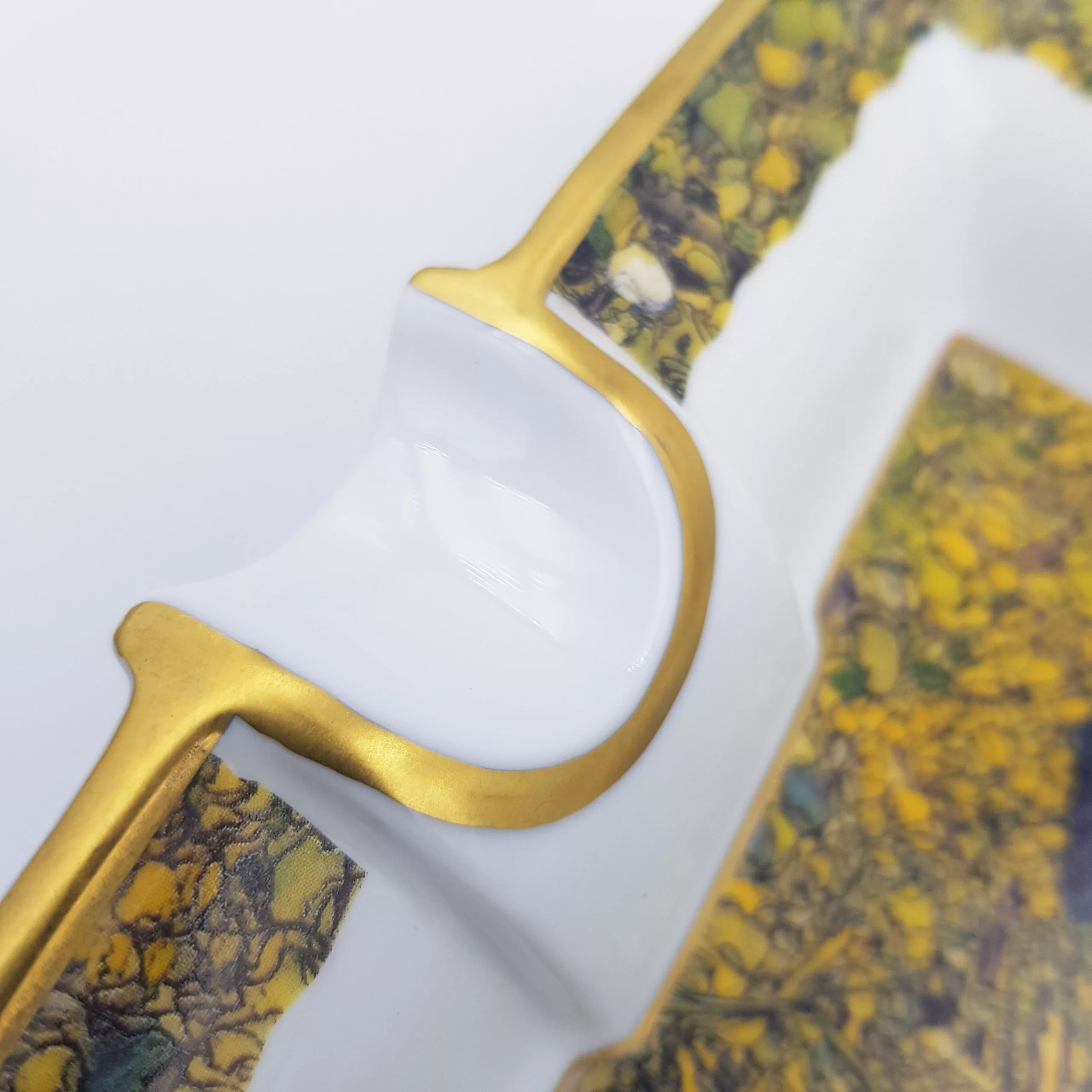 Elegant rectangular luxury porcelain ashtray or trinket tray from prestigious manufacture of RAYNAUD Limoges, for cigarettes or big cigars.