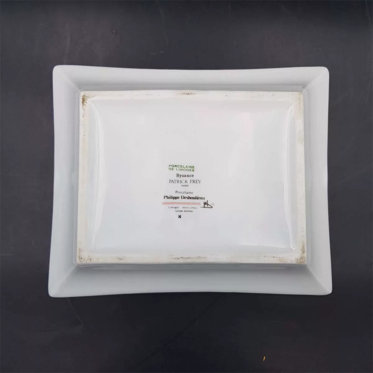 Beautiful rectangular ashtray in porcelain, by prestigious Limoges manufacturer Philippe Deshoulières.