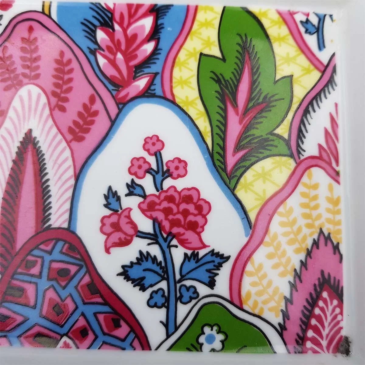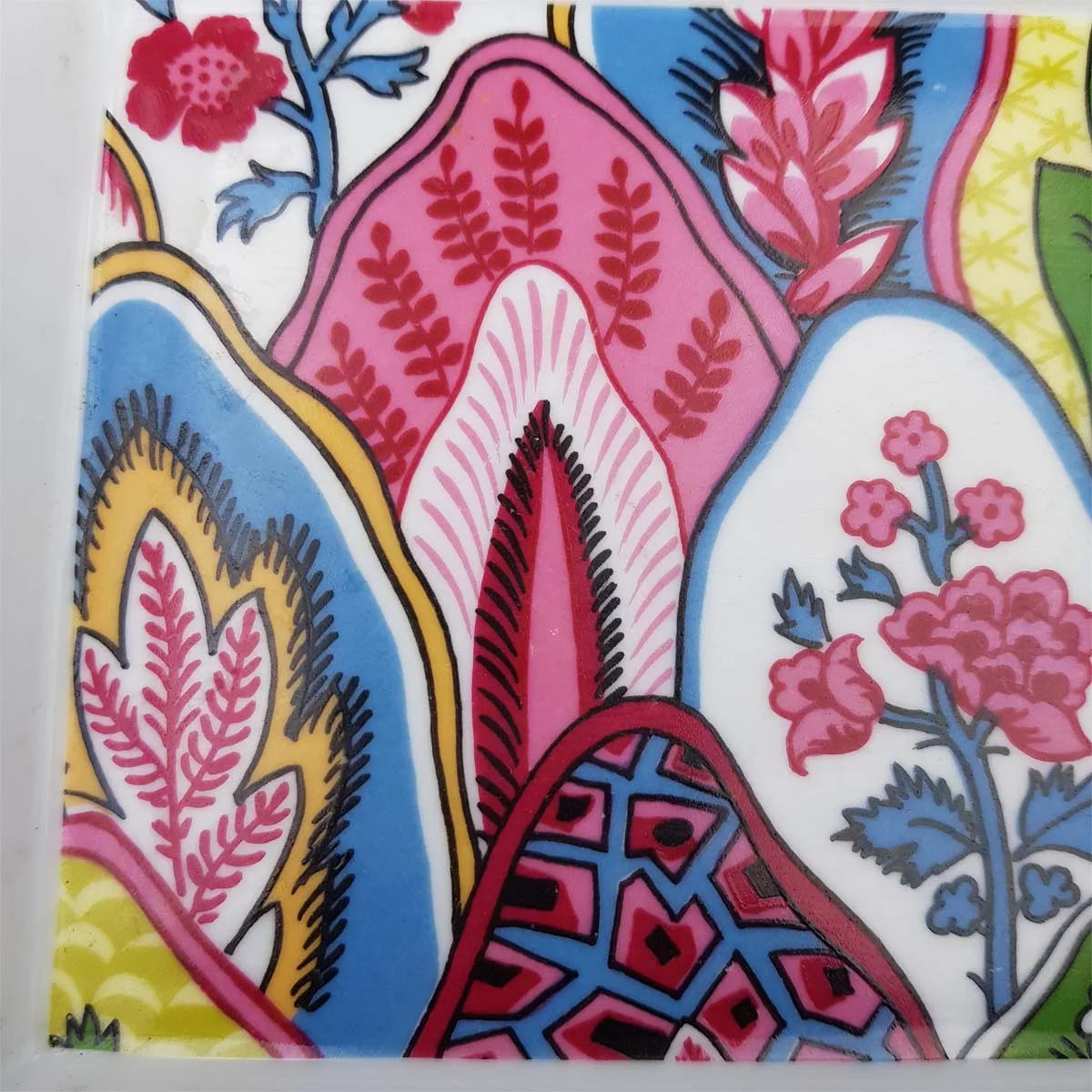 “Byzance” collection, with its polychrome patterns from cashmere / paisley inspiration in red, green, blue and yellow tones.