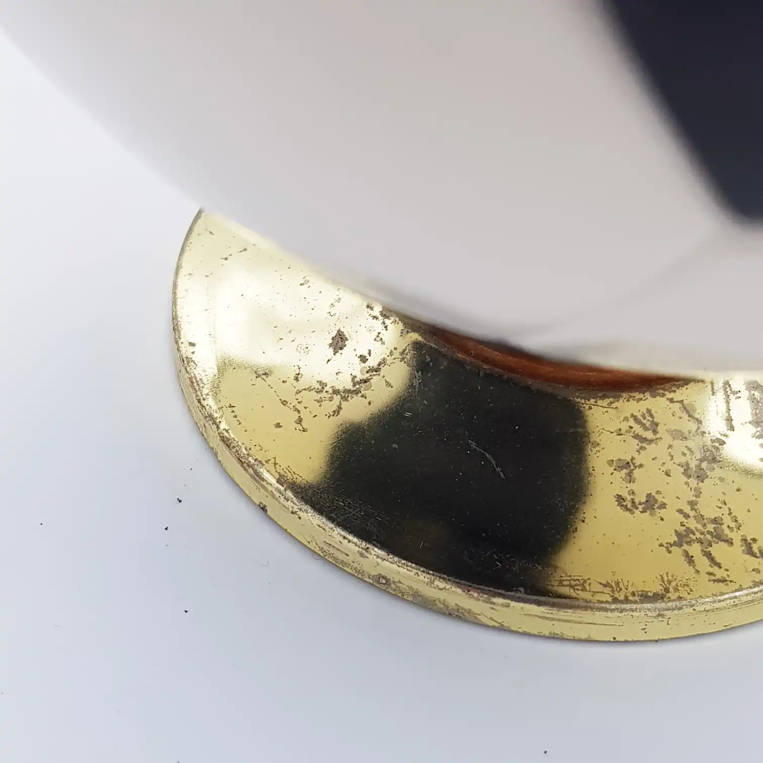 Vintage product that has already been used. Some black paintings repairs visible (see pictures). Some scratches / pittings on the base and to the metal parts. The ball opens and closes easily. All slots are working perfectly, some of them have been enlarged over time but this doesn’t cause any issue. None of them has been “crushed”, so all cigarettes enter the slots without any problem.