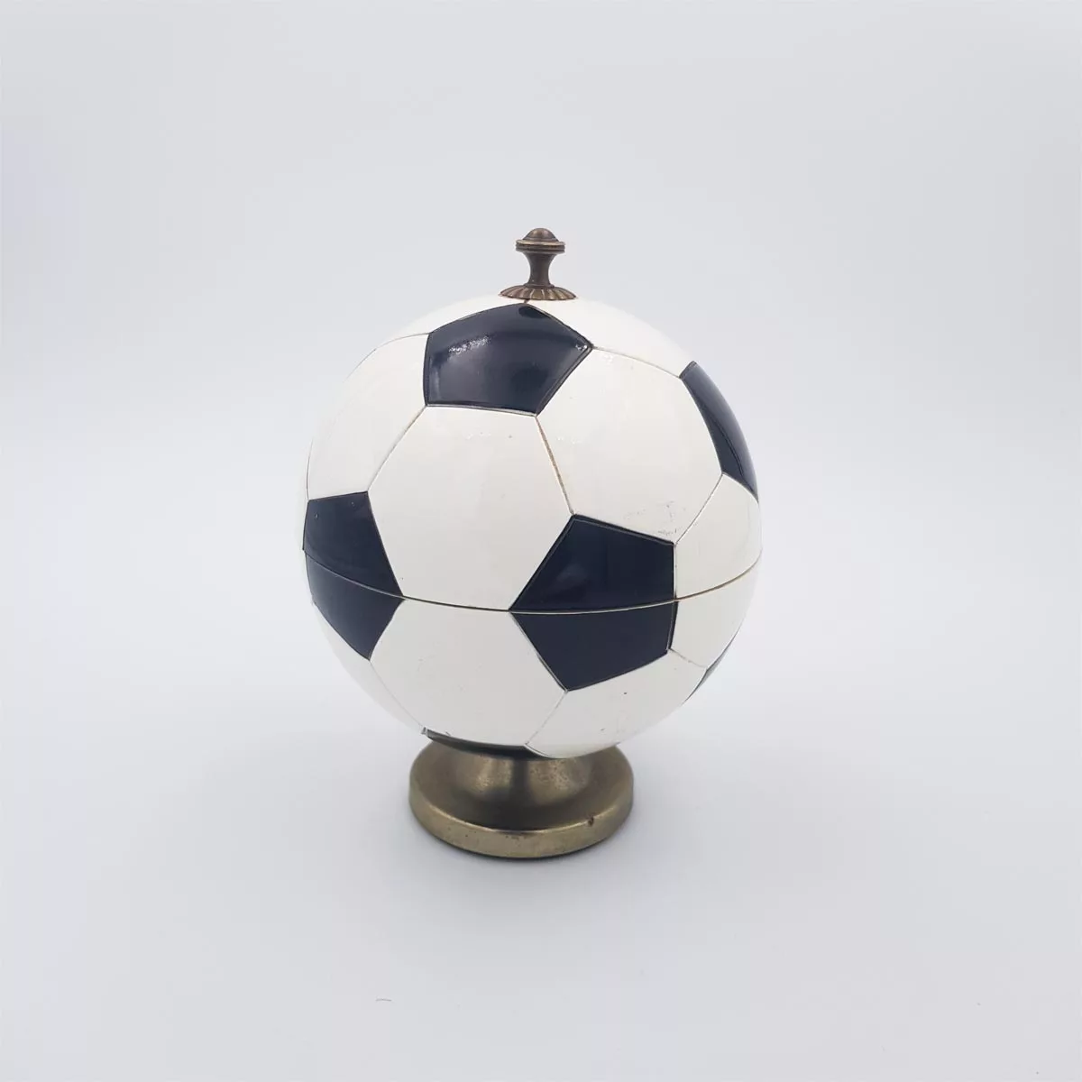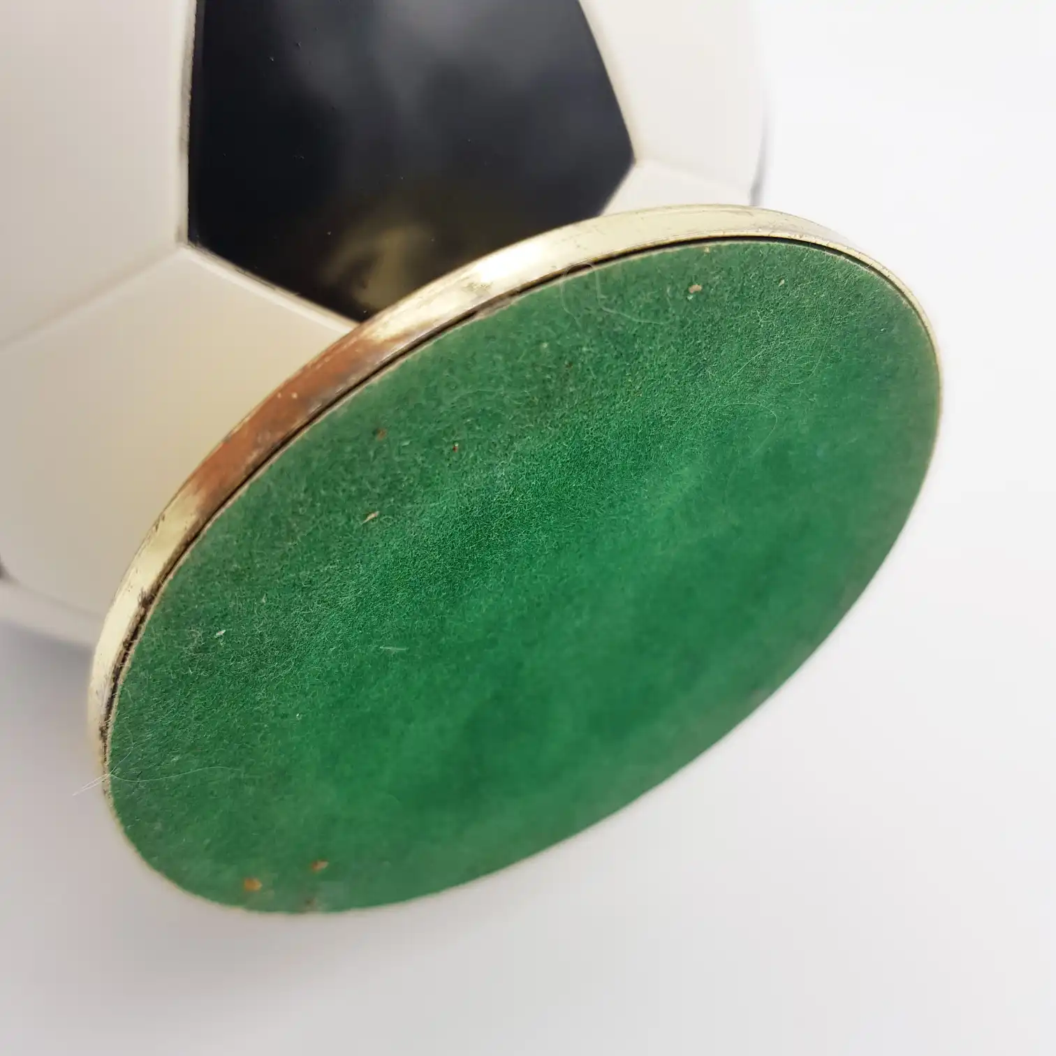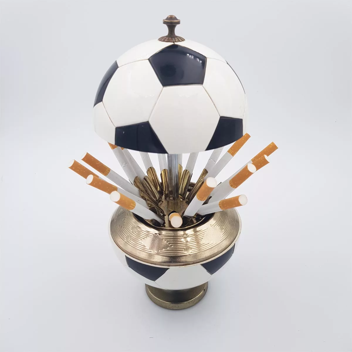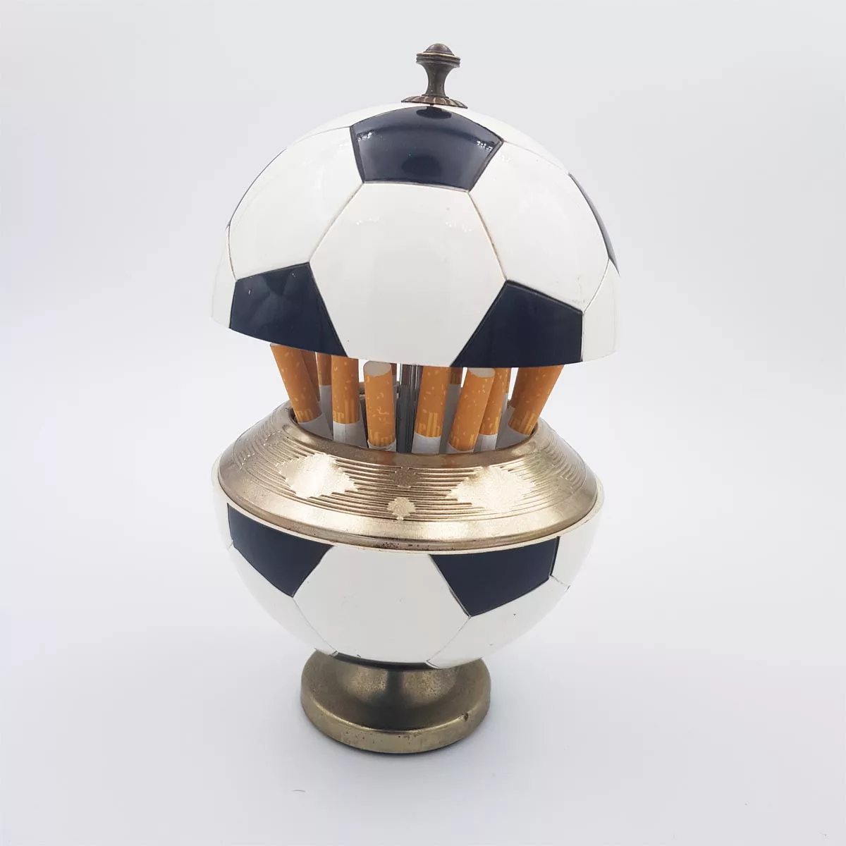Unusual vintage plastic cigarettes dispenser in the shape of a black & white football / soccer ball.
