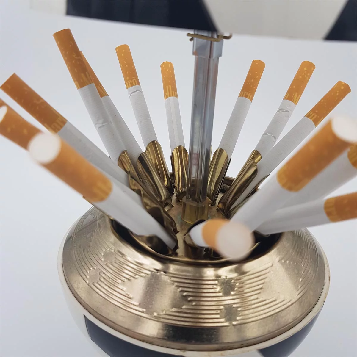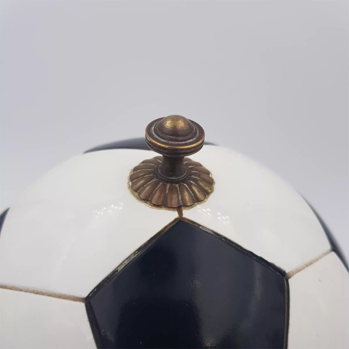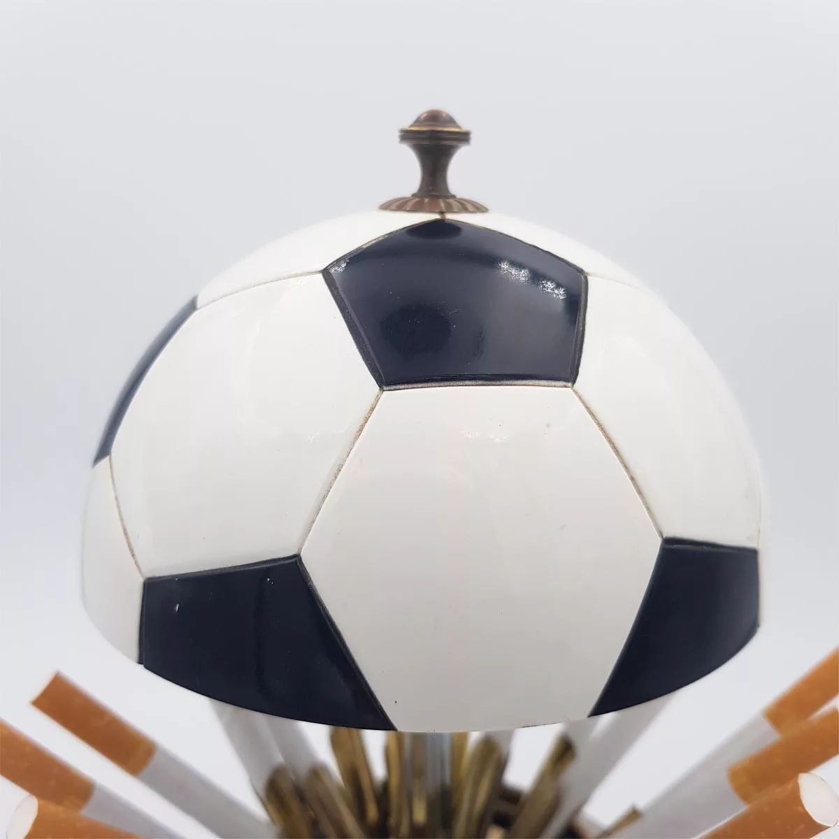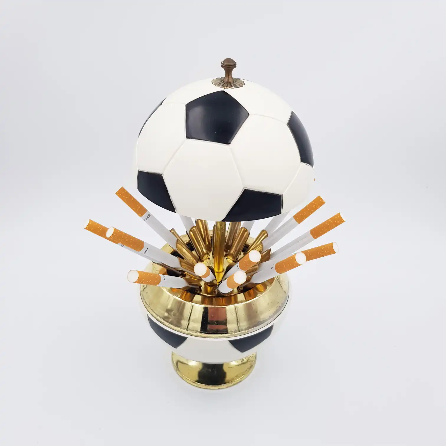 Unusual vintage plastic cigarettes dispenser in the shape of a black & white football / soccer ball.